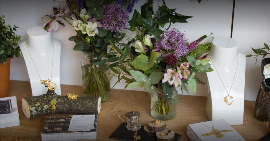 His jewellery is exquisite – all the intricate details in each piece painstakingly observed. There are bumblebee necklaces, bluebell drop earrings, fritillary flower necklaces, daisy wreath rings, tiny swallow earrings…the list goes on and the choice is endless. Alex has worked with the RSPB, Buckingham Palace and the V&A to name but a few.